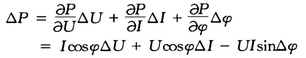 當(dāng)U、I、φ變化很小時(shí),有功功率變化量△P相對(duì)當(dāng)U、I、φ未變化時(shí)P的變化率為: