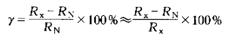 2)用絕對誤差Δ與被檢表讀數(shù)值Rx之比的相對誤差: