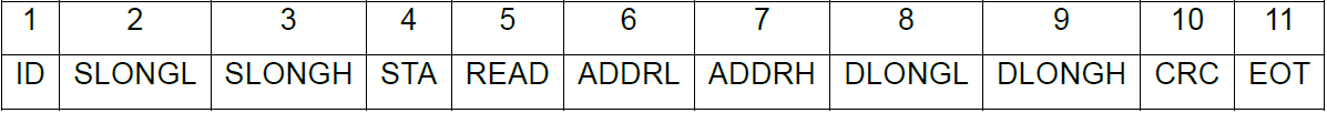 EOT:結(jié)束符,表示該條讀指令結(jié)束的標(biāo)志,固定寫入:FE。