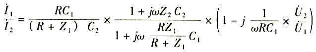 設(shè)電壓U1加在C1和C2的高壓端,電壓U2加載R的高電位端。Cx和Cs端鈕對地阻抗為Z1和Z2,注入Cx和Cs端鈕的電流為I1和I2,則