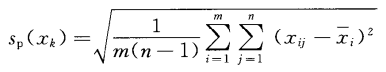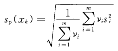 若對每個被測件已分別按n次重復測量算出了其實驗標準偏差si,則m組測得值的合并樣本標準偏差sp(xk)可按公式12計算: