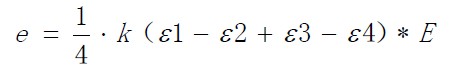 若四枚應(yīng)變片完全相同,比例常數(shù)為K,且應(yīng)變分別為ε1 、ε2 、ε3 、ε4,則上式可寫(xiě)成下面的形式: