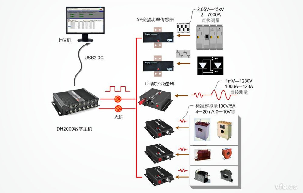 在SP系列變頻功率傳感器、DT系列數(shù)字變送器內(nèi)部將被測電量數(shù)字化,沒有信號傳輸環(huán)節(jié)的損失與干擾,并方便網(wǎng)絡(luò)化、智能化應(yīng)用。同時(shí)光纖傳輸具有很強(qiáng)的抗干擾能力,在廣泛使用變頻器、整流器等強(qiáng)電磁輻射場合,系統(tǒng)準(zhǔn)確度不會(huì)受傳輸線路及現(xiàn)場干擾的影響,安裝要求低,測量準(zhǔn)確度高。