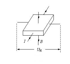 在半導(dǎo)體薄片兩端通以控制電流I,并在薄片的垂直方向施加磁感應(yīng)強度為B的勻強磁場,則在垂直于電流和磁場的方向上,將產(chǎn)生電勢差為UH的霍爾電壓。