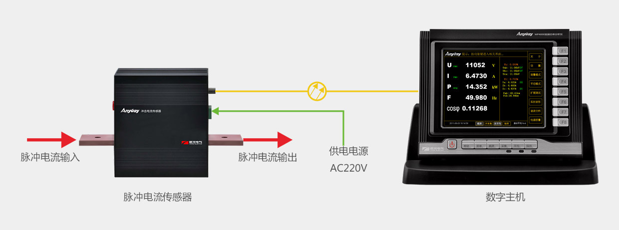 ICSA脈沖電流傳感器測量原理及其簡單,將脈沖電流傳感器串聯(lián)至測量回路中測量脈沖電流,同時將測量的模擬信號轉(zhuǎn)換成數(shù)字信號通過光纖傳輸至數(shù)字主機(jī)進(jìn)行數(shù)據(jù)處理、顯示和儲存,脈沖電流傳感器采用AC220隔離電源供電。